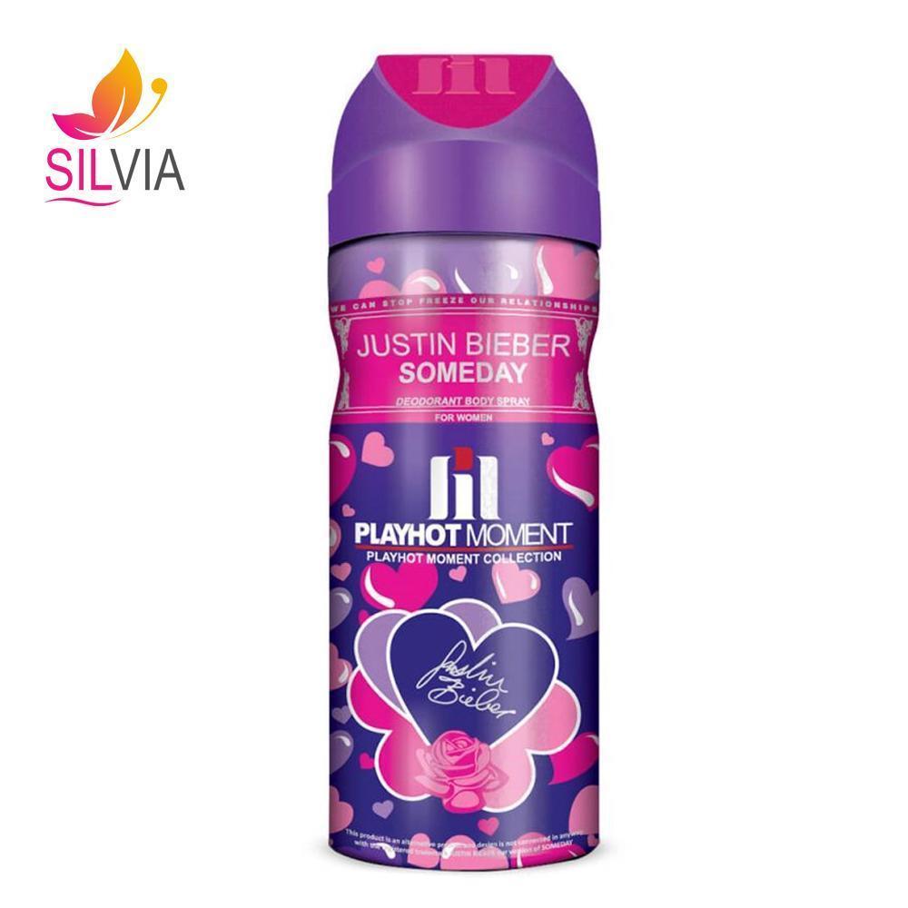 اسپری دئودورانت زنانه پلی هات مومنت مدل Justin Bieber Someday
