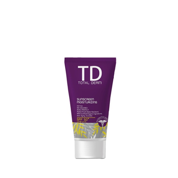 کرم ضدآفتاب توتال درم با برخورداری از SPF 50 ضدآفتابی قوی به شمار میرود و از پوست در برابر انواع اشعههای مضر خورشید محافظت میکند. این محصول فاقد چربی است و با کنترل ترشح چربی پوست باعث درمان و جلوگیری از آکنه و جوش در سطح پوست میشود.