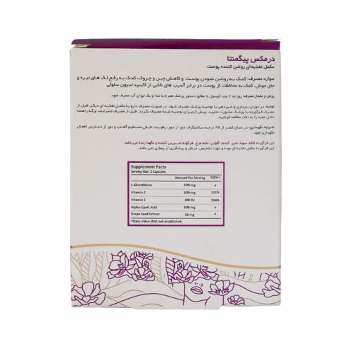قرص پیگمنتا درمکس pigmenta با داشتن ترکیبات موثری مانند ال گلوتاتیون، آلفا لیپوئیک اسید، عصاره دانه انگور و ویتامینهای C و E به کاهش تولید رنگ دانه ملانین در مناطق تیره کمک کرده و باعث سفیدی و روشنتر شدن پوست میشود. مواد سازنده این کپسول، با رادیکالهای آزاد مبارزه کرده و از این طریق به از بین رفتن چین و چروک کمک موثری میکند. عصاره انگور موجود در کپسول پیگمنتا با استحکام بخشیدن به غشا سلولها به حفظ ساختار طبیعی آنها کمک کرده و از پیری سلولها جلوگیری میکند.