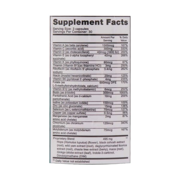 علاوه بر موارد گفته شده با پشتیبانی کامل مولتی ویتامین از جمله ۴۰۰ درصد ارزش روزانه ویتامین D و ۲۰۰ درصد ارزش روزانه ویتامینهای گروه B میتوان این محصول را به عنوان یک مکمل موثر دانست. تمامی این ترکیبات به کاهش علائم یائسگی کمک شایانی میکنند.